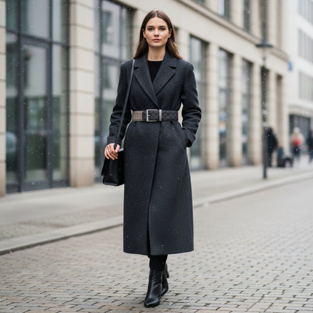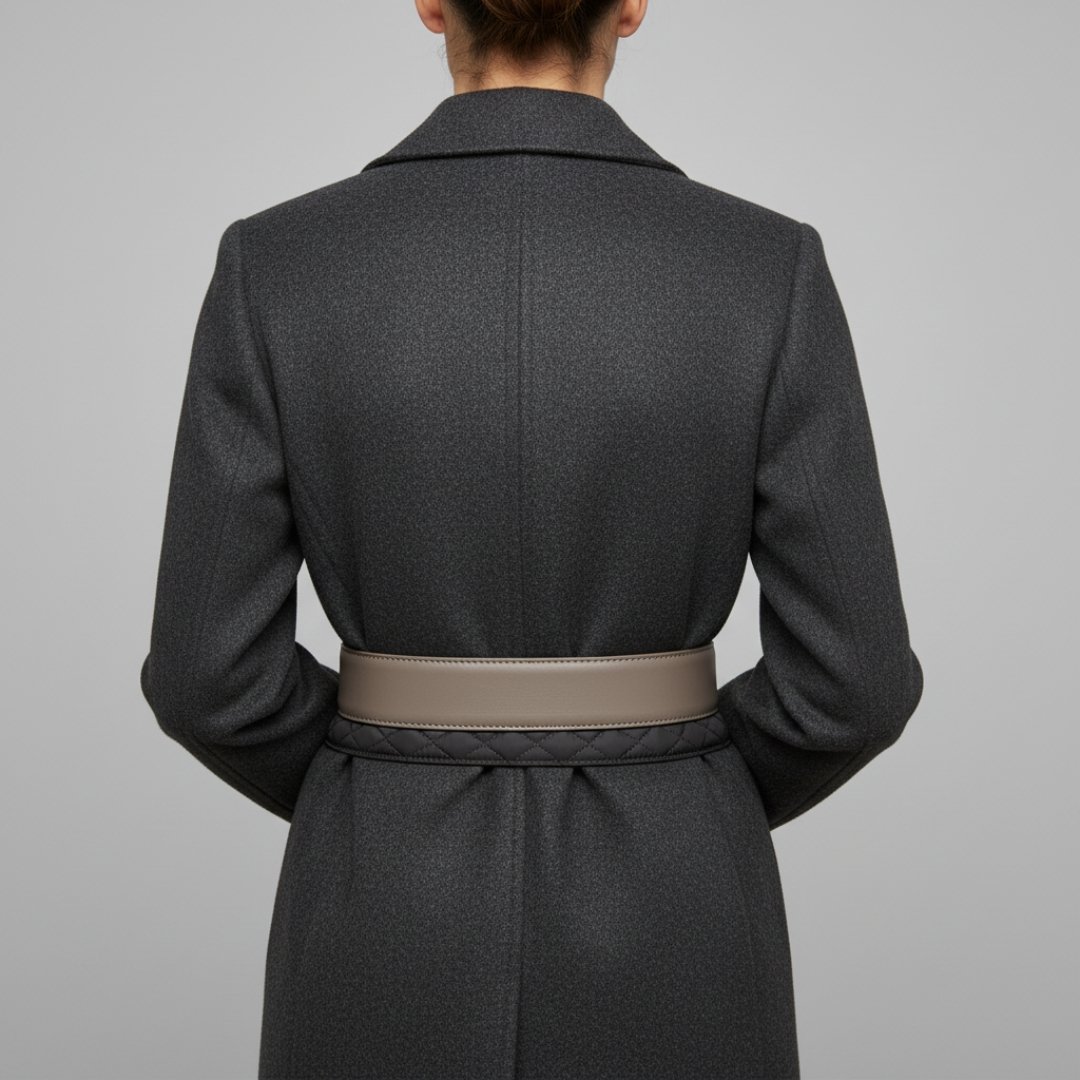 Der Gürtel lässt sich mühelos anpassen und passt perfekt zu modernen Winteroutfits – ein stilvolles Accessoire mit doppeltem Nutzen.